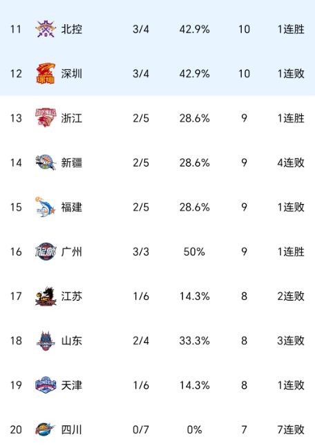 - CBA排名榜:北京、廣東雙雙7連勝,山東3連敗+新疆4連敗皆倒數(shù)